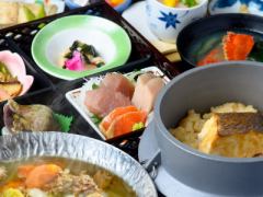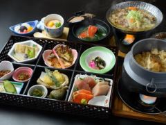 Matsutake Mushroom Set | Please enjoy matsutake mushrooms such as kettle rice, steamed matsutake mushrooms, matsutake tempura, and matsutake soba noodles. |